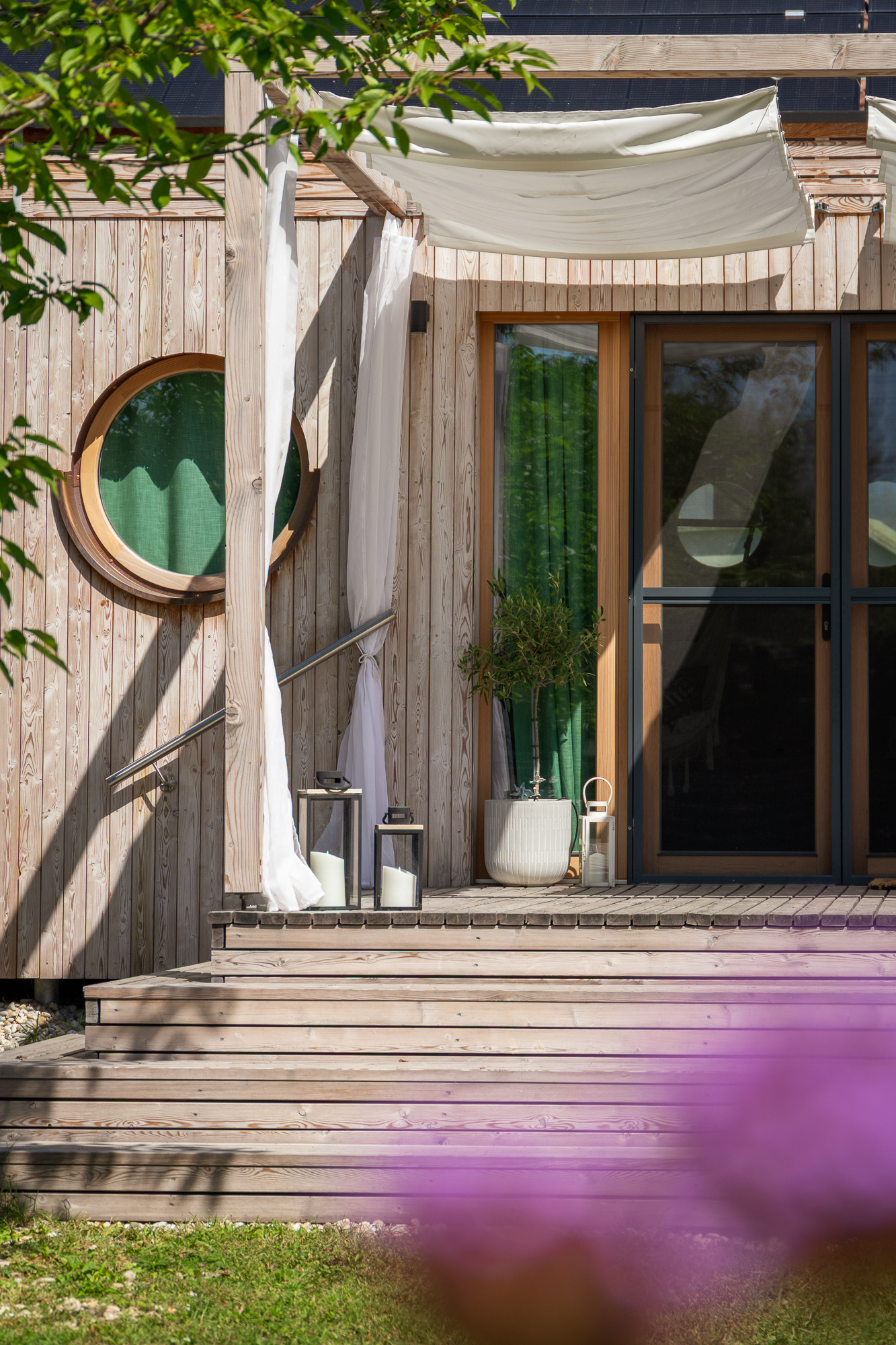 Bei mir wird Nachhaltigkeit ganz groß geschrieben, denn mein Strom kommt von der Sonne und durch meine Bio-Trenntoilette wird viel Wasser eingespart. Wenn es kühler wird, sorgt mein Holz-Pellets-Ofen für eine besondere Atmosphäre. Meine riesige Terrasse lädt zum Entspannen ein und auch im Garten gibt's Einiges zu entdecken.